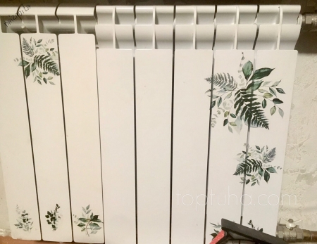 А хочецца мне посреди затянувшейся хмурой зимы ярких красок, тепла и уюта. На Мальдивы денег нет, поэтому решила раскрасить батарею. Гы! И так как чудес не бывает, а вот херня случается регулярно и рученьки мои как росли из попоньки, так и растут, то использовала я для этого плёночный трансфер. По сути это переводная картинка на подобии детских татуировок. Тем, кто с таким не сталкивался, описываю подробно.