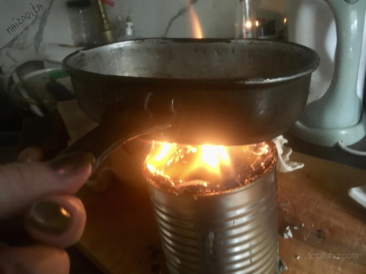 специально оставила так много фитиля, сейчас поймёте для чегоИспытание пройдено успешно: свеча не только устойчиво горит, так и пламени довольно чтобы пожарить походного вида яишню.