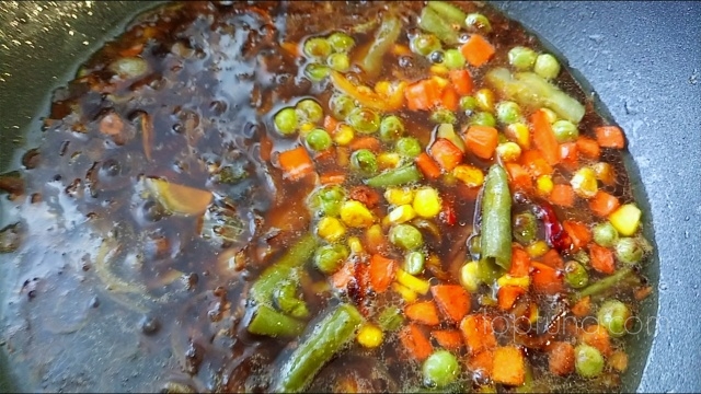Обжаренную мексиканскую смесь. И даю покипеть с минуту. Отставляю в сторону.
