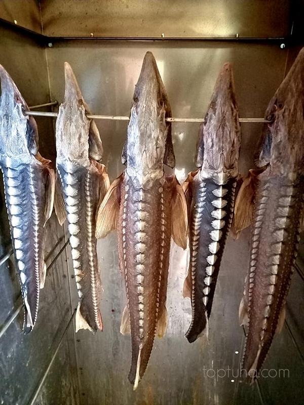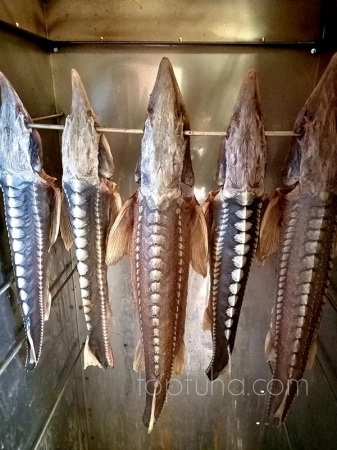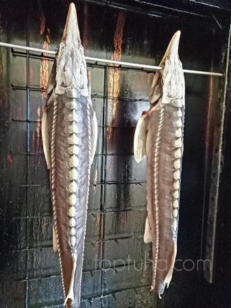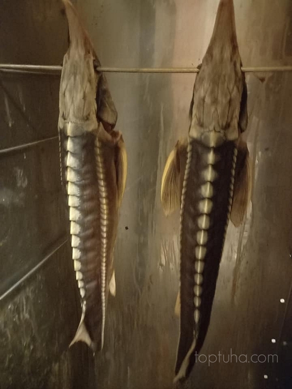 У нас маленький мастер-класс по копчению благородного осетра.