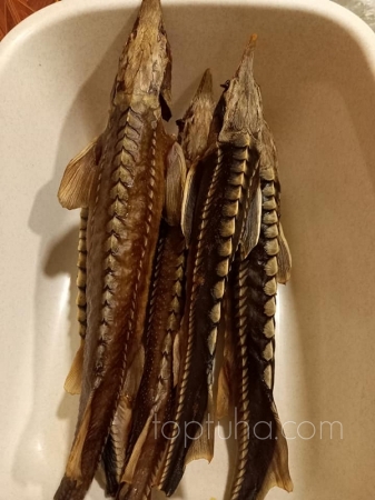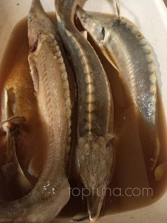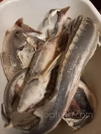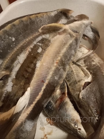 Не важно. Важно аккуратно удалить визигу - хрящевидную хрень, которая проходит вдоль хребта осетровых от головы до хвоста. Делать это следует нежно, чтобы не порвалась и не осталось в теле нашей рыбки.