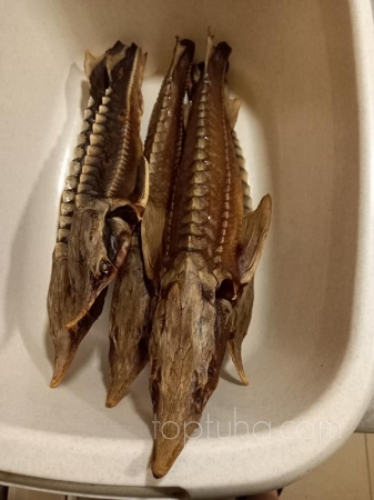Я отрезаю хвостовой плавник, чтобы добраться до визиги. Есть мнение, что визига ядовита. Это не так. Она может придать продукту ненужную горечь, не более. Есть даже прекрасный старорусский рецепт пирогов с визигами.