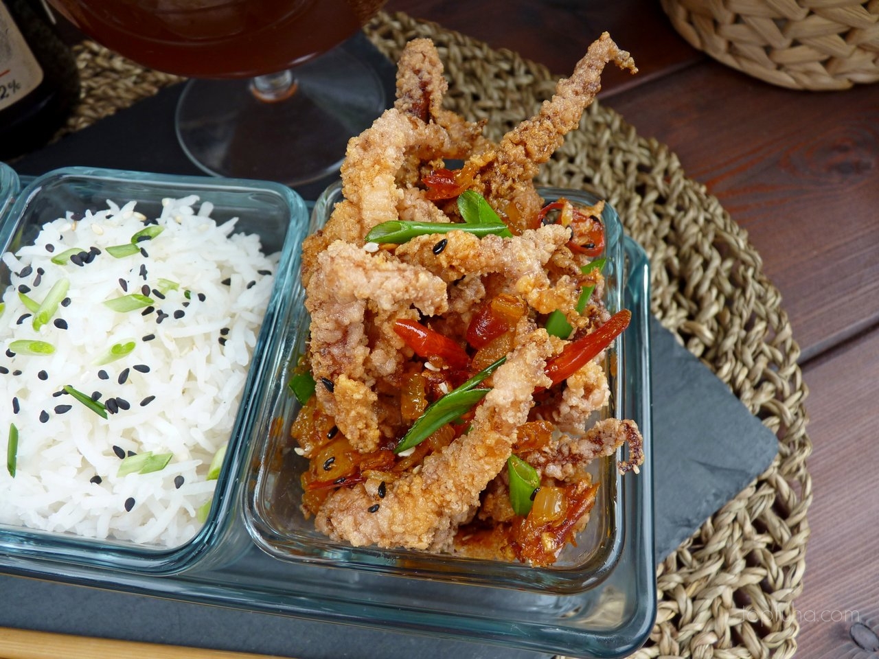 Второй рецепт называется «Щупальца кальмаров в чили пасте с бобами».