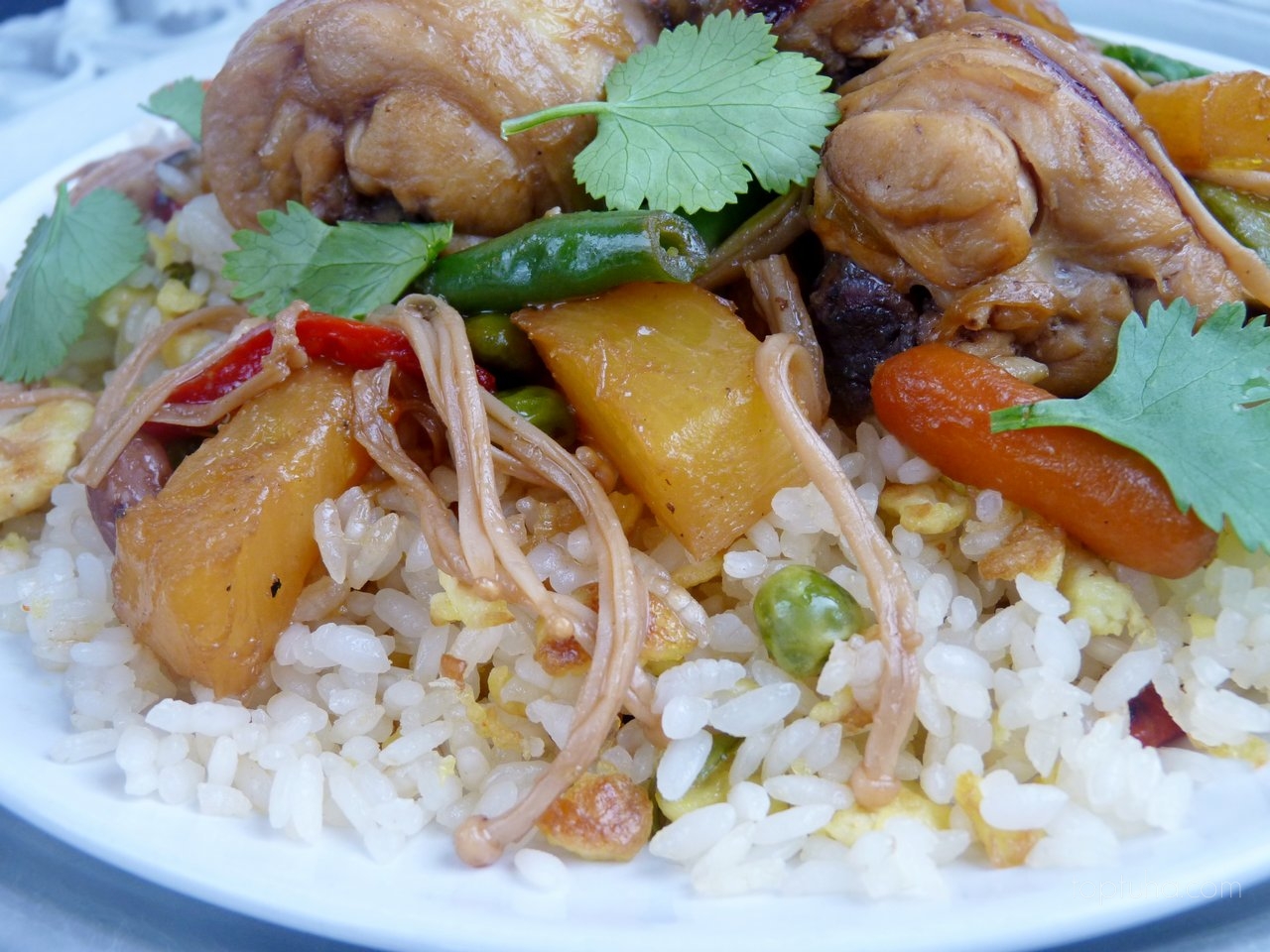 Ещё нужно будет пожарить рис. Я всеми фибрами души, полюбила китайский жаренный рис, который тут готовила Старли, вот его версию и буду подавать к этой курице. Если вы до сих пор такой рис не приготовили, срочно бегите и готовьте! У меня так одна подруга полюбила рис. Просто дала ей рецепт Старли и всё...человек начал есть рис, полюбил, а раньше, практически не ел его. Почему у меня версия? Просто исключила устричный соус, чтобы не забивать вкус курицы.