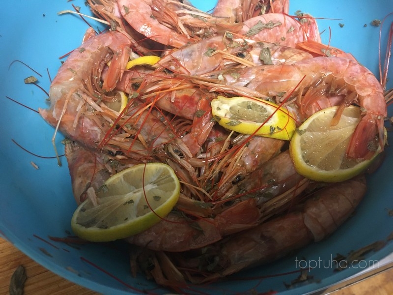 лимон с маринада не выкидываем, а едим вместе с лангустинами
