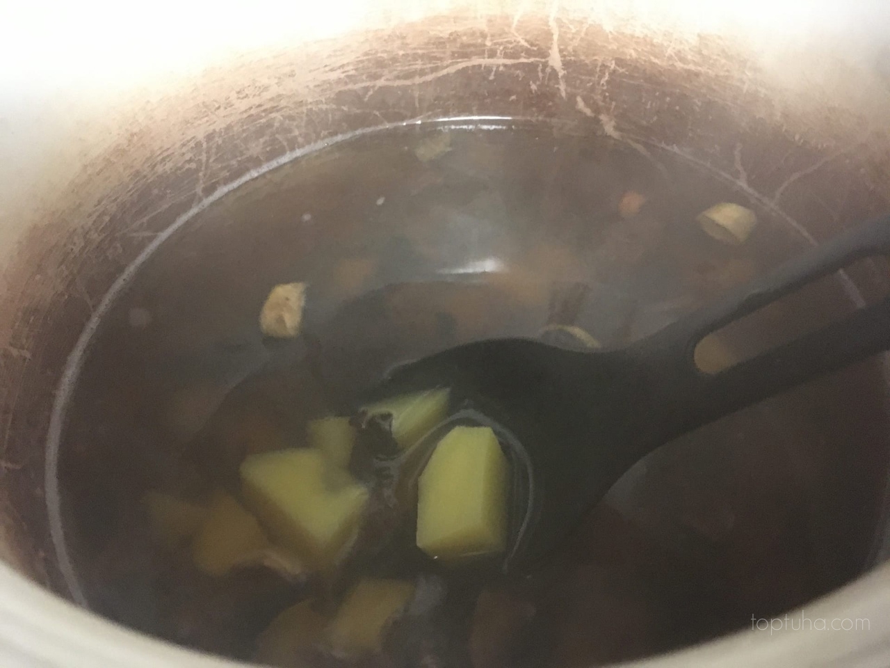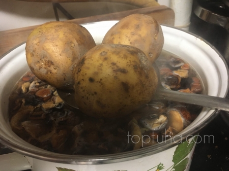 а после закипания закидываем половину взятой картошки прямо в мундирах.