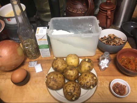 Так как голубь скрылся в неизвестном направлении, то в меню веганский суп из сухих грибов по ижорски. Для приготовления красивственно разлаживаем на доске: