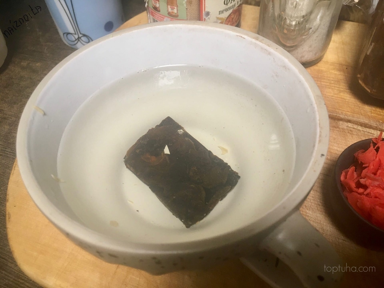 Пачку древесных грибов заливаем водой и обставляем набухать.