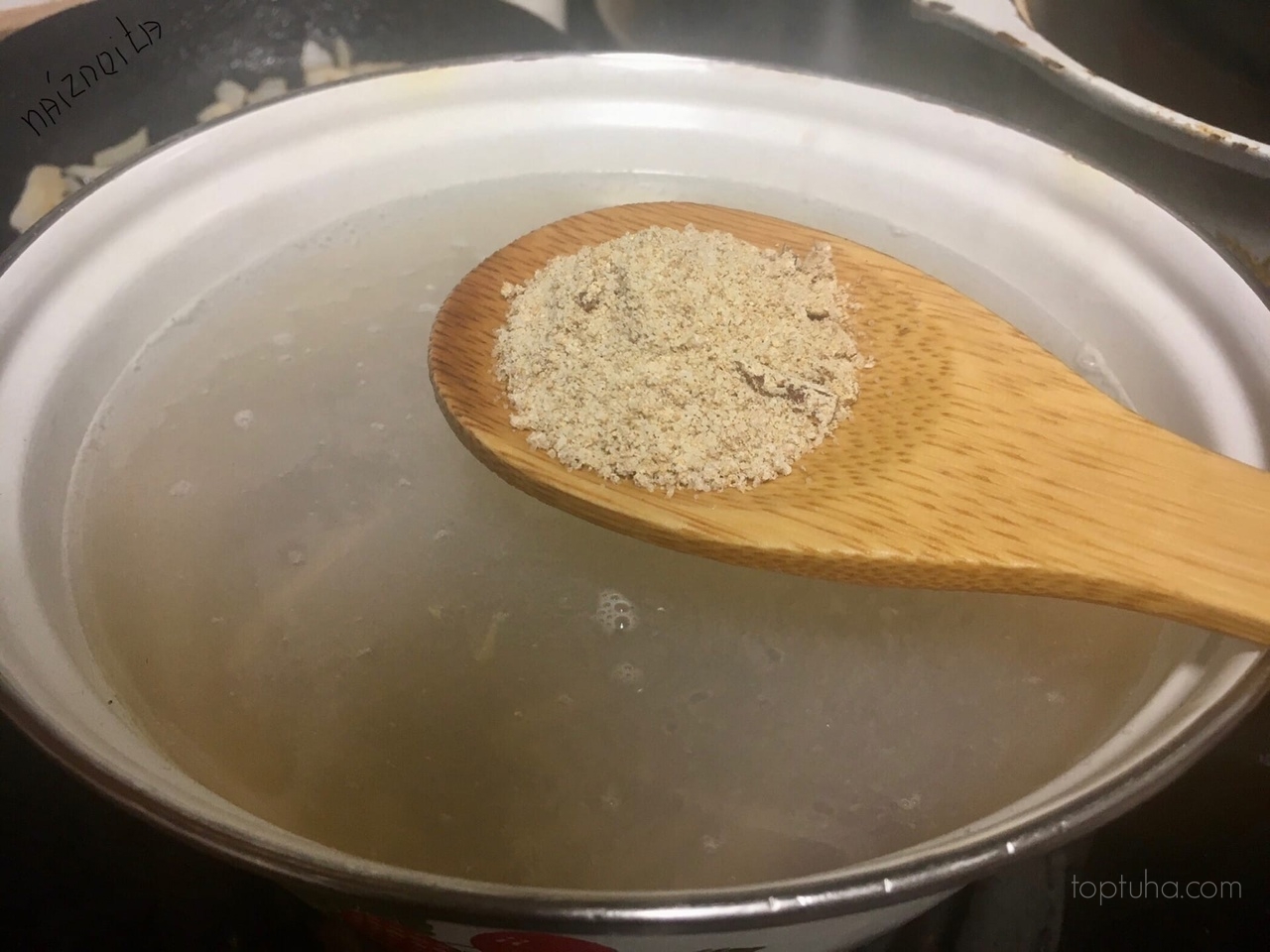 Ложку пасты мисо разводим в чашке бульона,