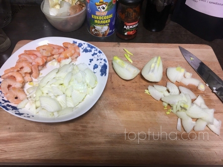 Вливаем кокосовое молоко и держим на огне буквально минут десять.