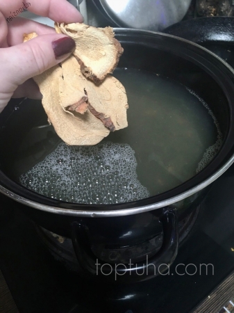 Поэтому погнали! Традиционно начинаем с того, что требует больше времени: древесные грибы замачиваем,
