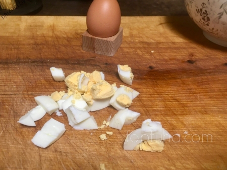 Ну что ж… начинаем превращать этот набор продуктов в салат. Первым делом отвариваем яйца, затем нарезаем кубиками.