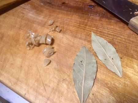 Через минут пять добавляем лавр, чеснок и острый перец с зеленью.