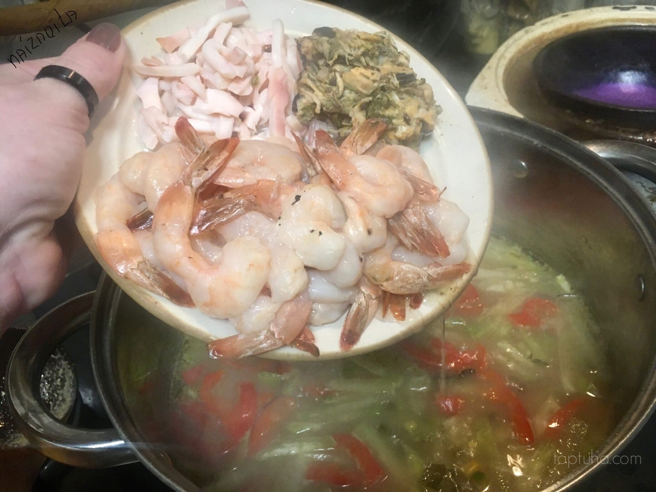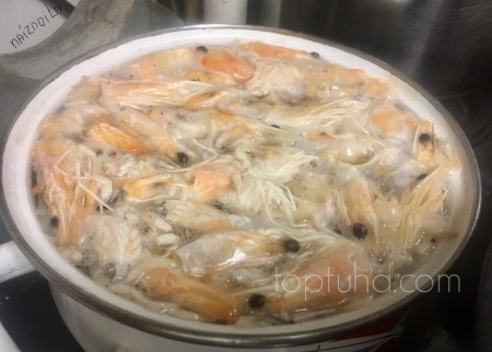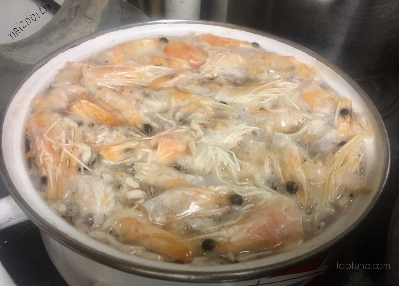 Когда суп почти готов запихиваем в кастрюлю морепродукты,