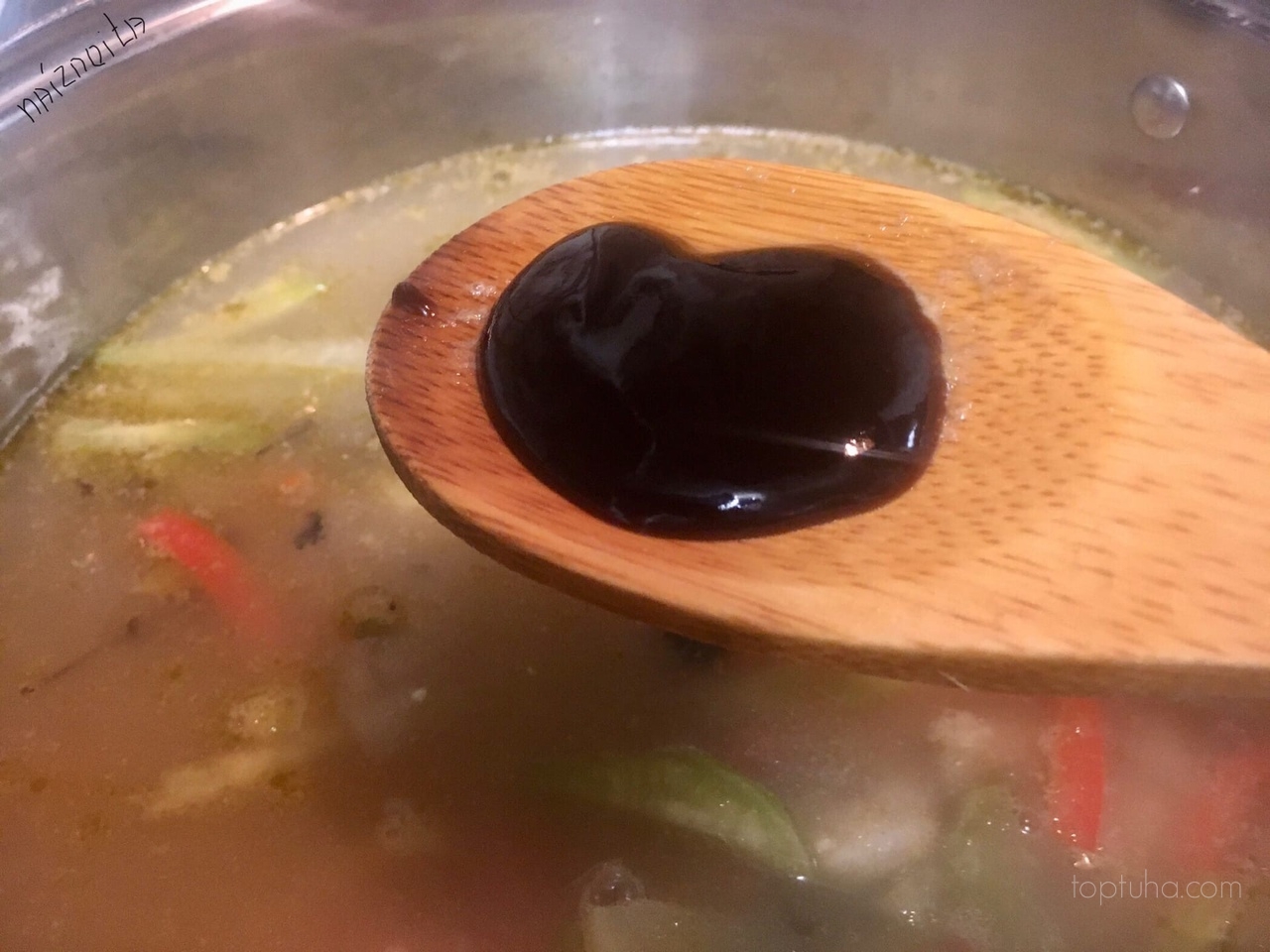 перемешиваем, а минут через пять выравниваем вкус рыбным соусом.