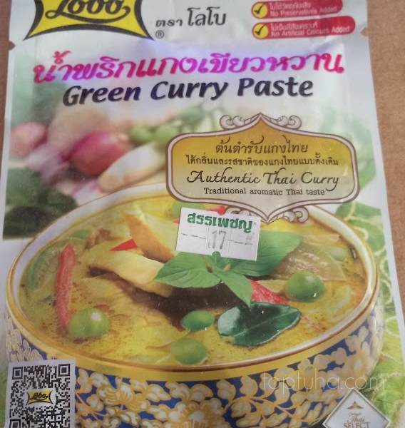 Есть и другие цвета у этого карри - жёлтый и красный, также есть массаман карри, пананг карри и даже кислый сом карри. Это шесть самых известных традиционных тайских карри. Хотя на самом деле рецептов много больше. Типо как у нас - рецептов борща. Но зелёный среди названных - самый острый. Чаще всего встречается рецепт с курицей, но я люблю с морепродуктами. Для приготовления кенг кио ван красивственно разлаживаем на доске: