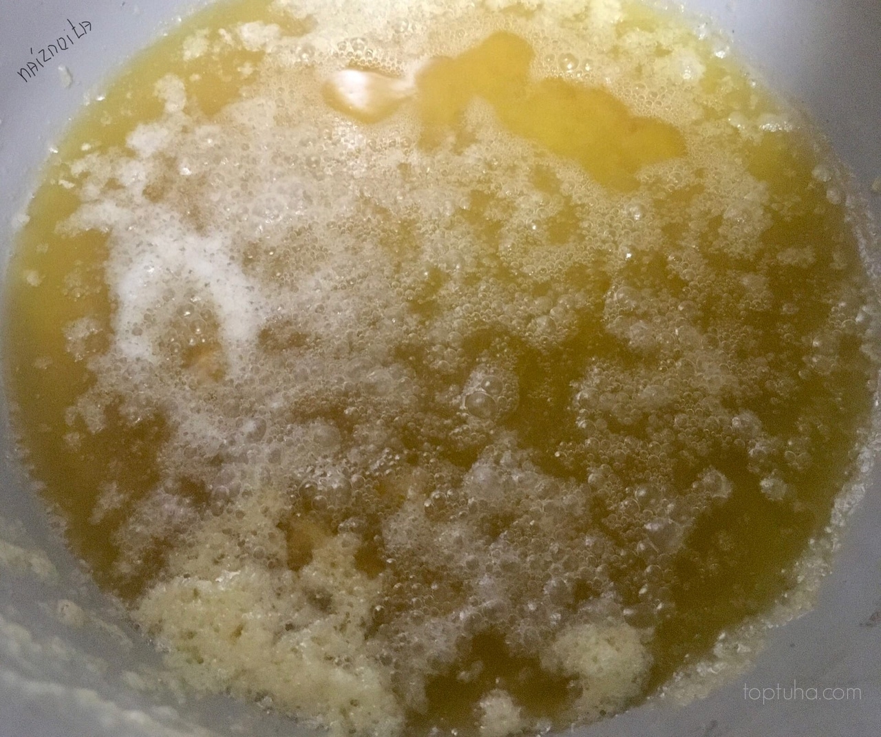 Зато после работы уже ничего не надо, работа целиком и полностью меня удовлетворяет. Сил иногда остаётся только закинуть что-либо в мультиварку и нажать кнопку. Ну собственно рецепт топлённого масла как раз ситуативно подходит. Поэтому незамедлительно красивственно разлаживаем на доске: