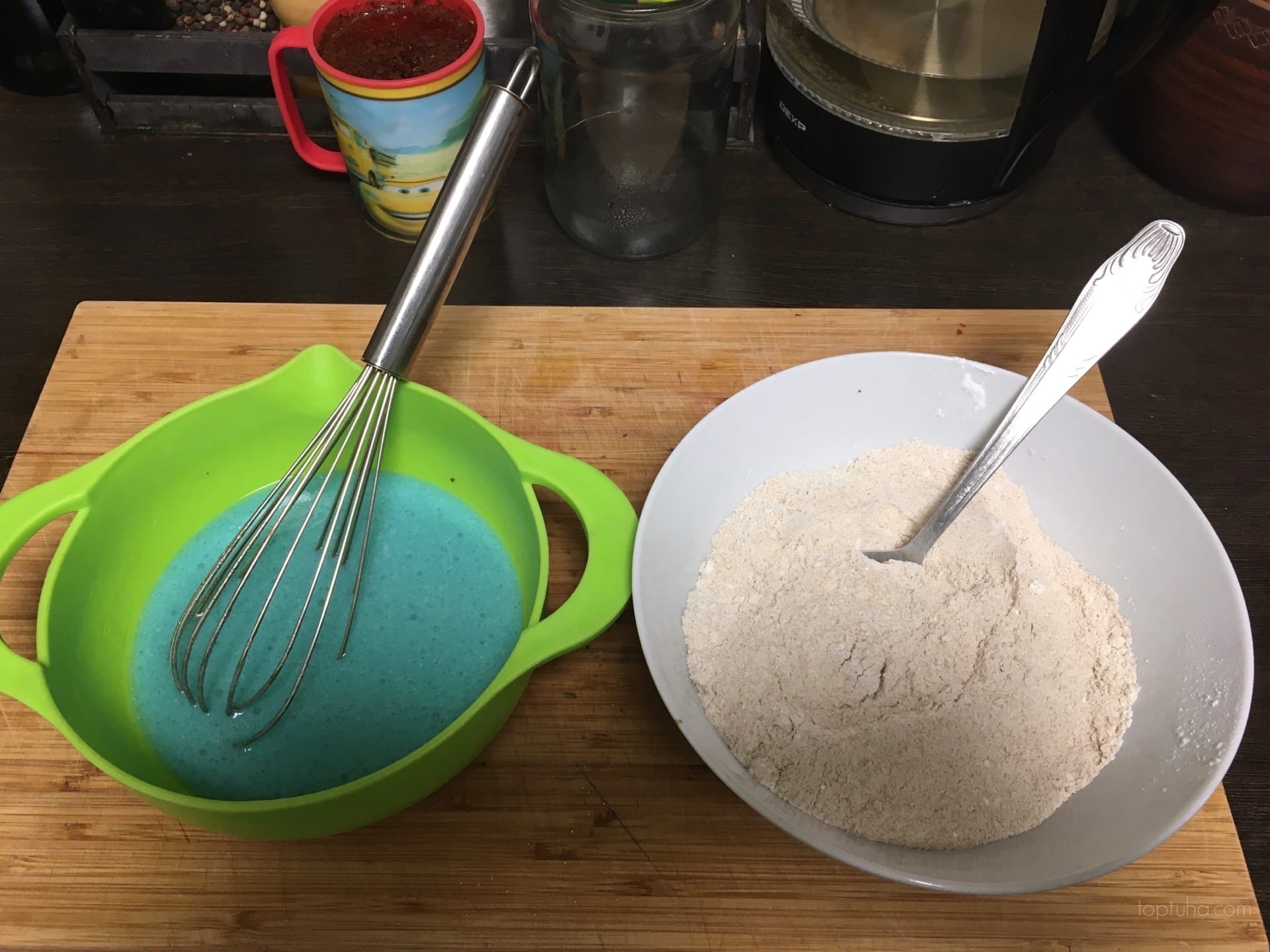 Все сухие ингредиенты смешиваем с сухими, мокрые - с мокрыми.