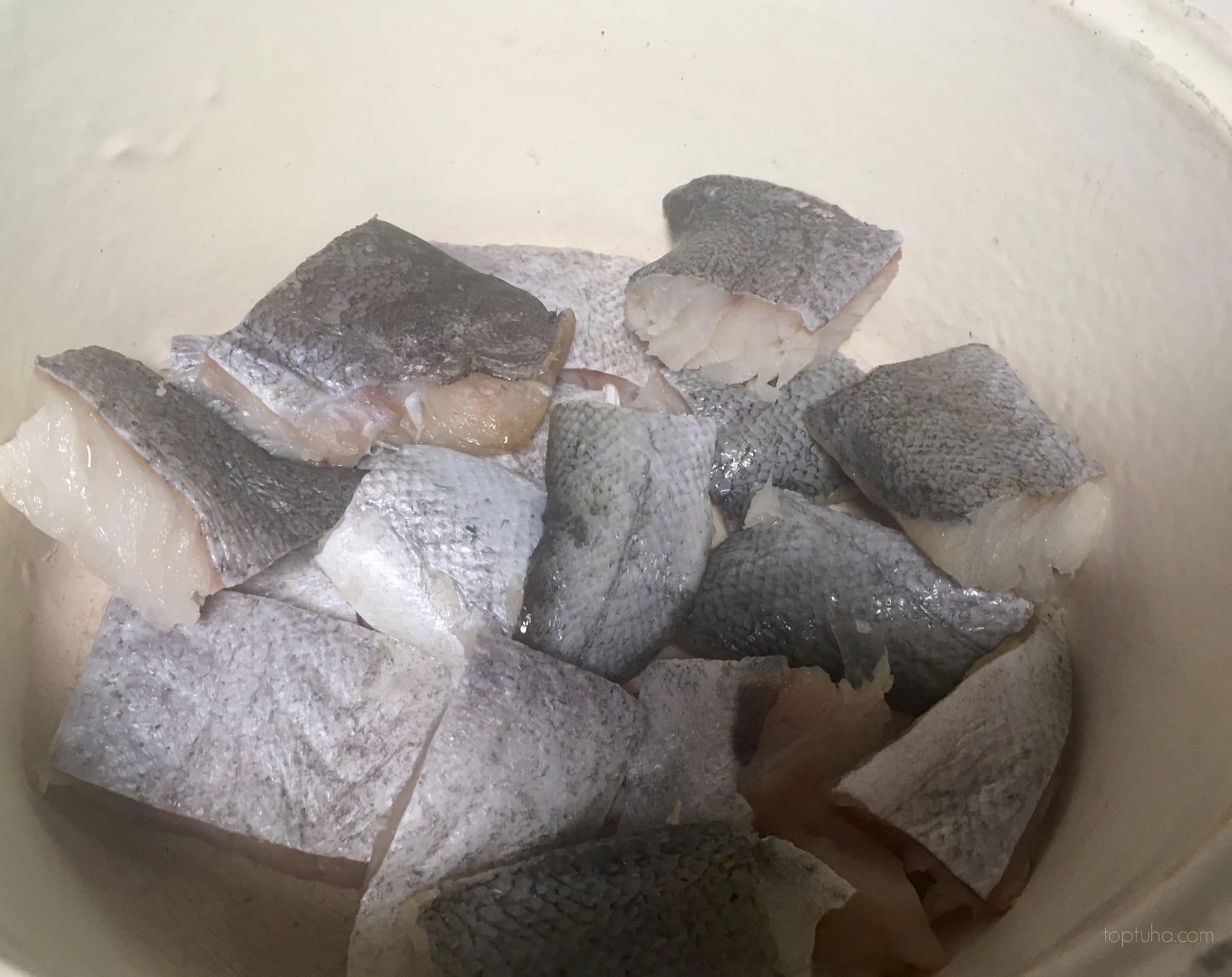 Варим на маленьком огне минут 20, пердически вошкая лопаткой тудым-сюдым. Рыбу выкладываем в казан, заливаем получившимся соусом, добавляем полстакана воды, солим, перемешиваем и забываем на полчаса.