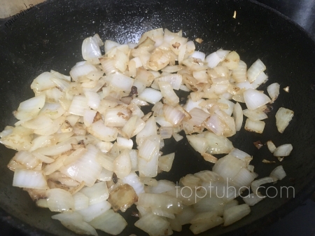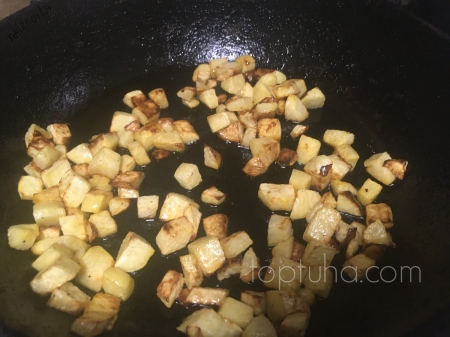 В это время по отдельности обжариваем накубиченные лук