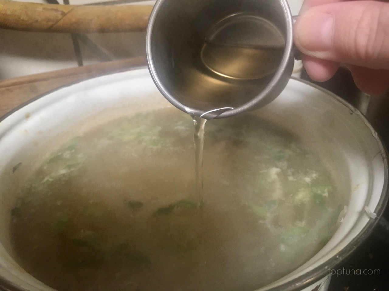 но чем дольше оно хранится или существует в составе блюда, тем соленее по вкусу оно становится. Солёное яйцо тоже даёт пусть небольшую, но капельку соли супу. Поэтому солим кани джосуй прям по минималке. Так же и перчим, чтобы не "забить" сладковатый свежий вкус крабового мяса.