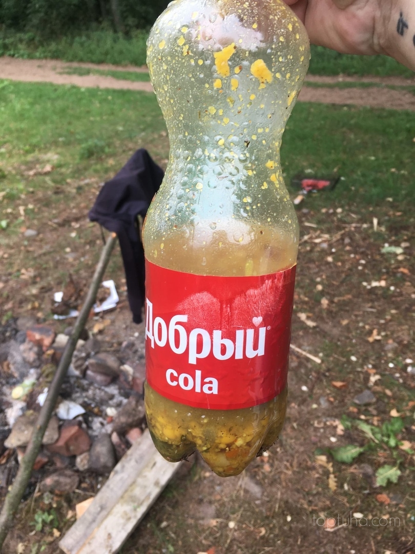 Помню один такой поход, когда налетевший с вечера ураганный ветер полночи выл за палаткой и недовольный, что не впустили, злобно расшвырял оставленные вещи. Ветку сосны, к которой привязали рюкзак с едой, чтобы любители ночного дожора не добрались, да и зверью неповадно было, хряснуло так, что куль с запасами успешно состыковался с поверхностью планеты. Провиант при этом пострадал и восстановлению не подлежал. Это много позже чья-то умная головушка докумекала пересыпать крупу в пластиковую бутылку из-под кваса. Практичность этого решения оправдывает себя и по сей день. В опустевшую по итогу бутылку можно перелить суп, который ни в кого не влез, и забрать с собой в обратную дорогу. Так что без бутылки мы теперь в походы не ходим.