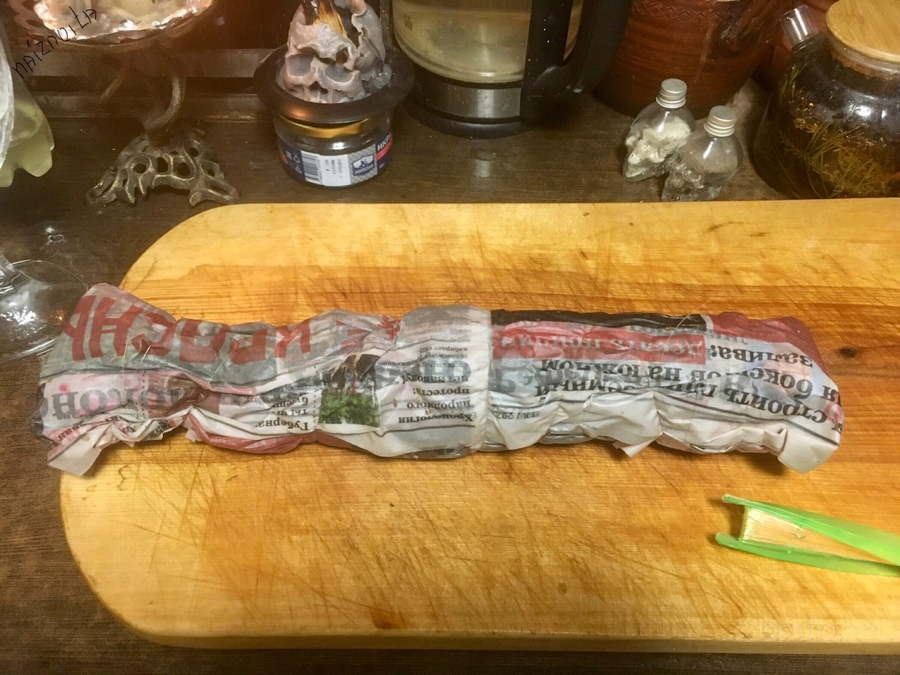 Заворачиваем в мокрые газеты и перевязываем леской.